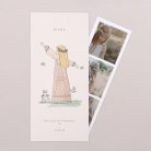Das besondere Format dieser Einladungskarte wird Ihre Liebsten begeistern! Dieses Modell besteht aus einer hochformatigen Klappkarte und einem herausnehmbaren Fotostreifen, der als Andenken aufbewahrt werden kann, an den Kühlschrank gepinnt oder als Lesezeichen benutzt werden kann.