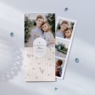 Das besondere Format dieser Einladungskarte wird Ihre Liebsten begeistern! Dieses Modell besteht aus einer hochformatigen Klappkarte und einem herausnehmbaren Fotostreifen, der als Andenken aufbewahrt werden kann, an den Kühlschrank gepinnt oder als Lesezeichen benutzt werden kann.