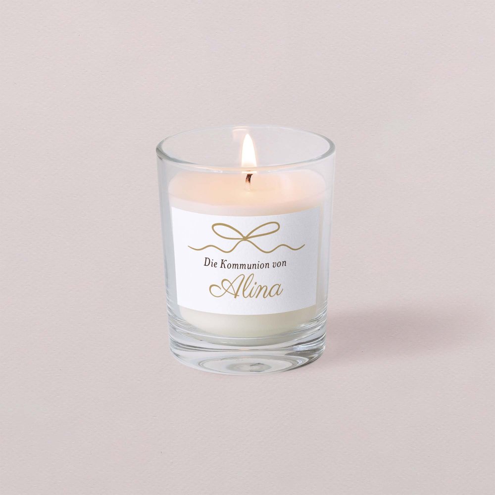 Schenken Sie Ihren Gästen eine schöne Erinnerung an die Kommunion Ihres Kindes. Die kleine personalisierte Kerze mit zartem Feigenduft wird Ihre Liebsten noch lange an die gemeinsamen Momente dieses Tages erinnern.