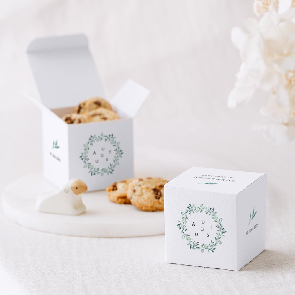 Gestalten Sie die Box mit dem Namen des Kindes, dem Datum der Kommunion und einer kleinen Nachricht und sorgen Sie für Freude bei Ihren Liebsten.