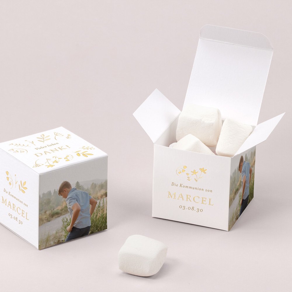 Gestalten Sie die Box mit dem Namen des Kindes, dem Datum der Kommunion und einer kleinen Nachricht und sorgen Sie für Freude bei Ihren Liebsten.