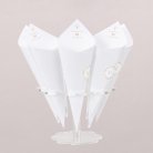 Die Spitztüten werden in flachem Zustand geliefert. Sie können einfach eingerollt und mit dem passenden, mitgelieferten Aufkleber befestigt werden.
