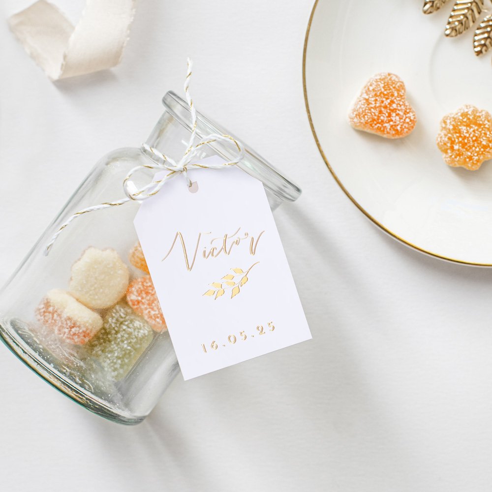 Vervollständigen Sie kleine Geschenke für Ihre Kommunionsgäste mit personalisierbaren Geschenkanhängern.