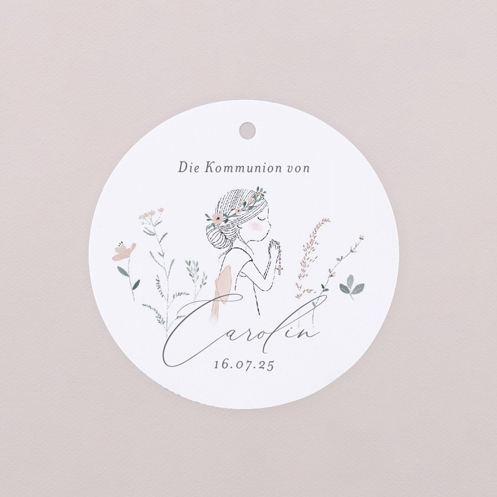 Dekorieren Sie kleine Geschenke für die Gäste Ihrer Kommunionsfeier mit diesen personalisierbaren Geschenkanhängern. Die hübschen runden Anhänger eignen sich hervorragend, um kleine Präsente, Geschenkboxen und andere Aufmerksamkeiten zu personalisieren.