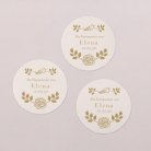 Runden Sie Ihre Papeterie und Deko mit den passenden Aufklebern ab! Mit dem Namen des Kommunionkindes und einer persönlichen Notiz gestaltet, können Sie mit den großen runden Aufklebern die verschiedensten Artikel schmücken: Briefumschläge, Geschenke, Marmeladengläser, Kerzen, und vieles mehr...!