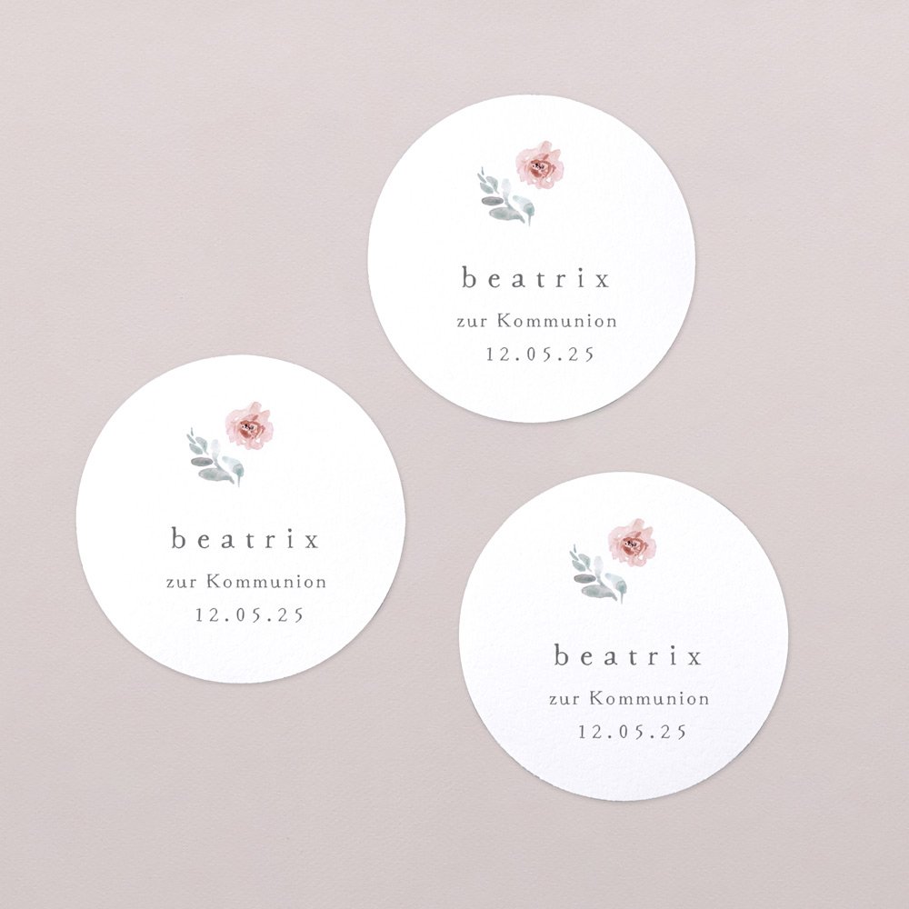 Runden Sie Ihre Papeterie und Deko mit den passenden Aufklebern ab! Mit dem Namen des Kommunionkindes und einer persönlichen Notiz gestaltet, können Sie mit den großen runden Aufklebern die verschiedensten Artikel schmücken: Briefumschläge, Geschenke, Marmeladengläser, Kerzen, und vieles mehr...!