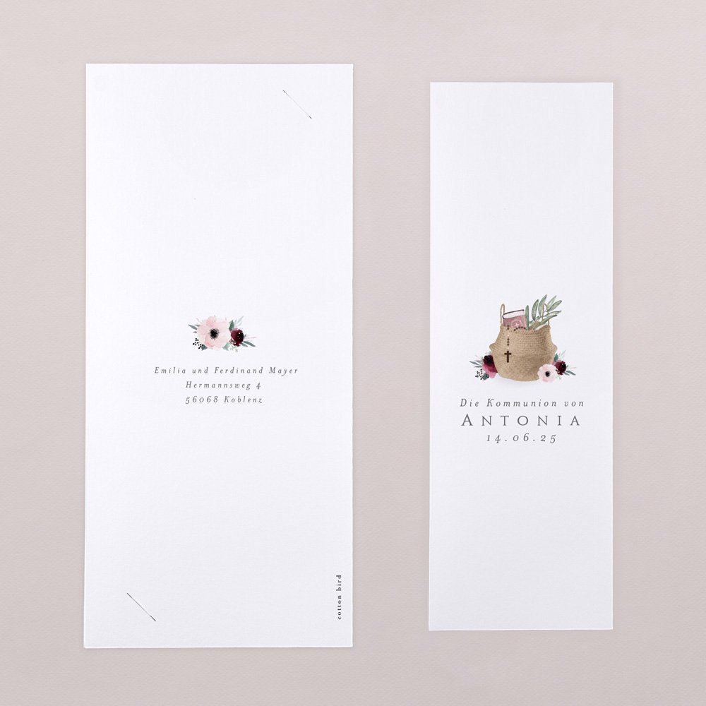 Diese Danksagung hat es in sich: die Klappkarte im Hochformat beinhaltet einen Fotostreifen mit Platz für 3 Ihrer schönsten Kommunionsfotos. Der Streifen kann als Andenken in der Karte aufbewahrt werden, aber auch herausgenommen und an den Kühlschrank gepinnt oder als Lesezeichen genutzt werden.
