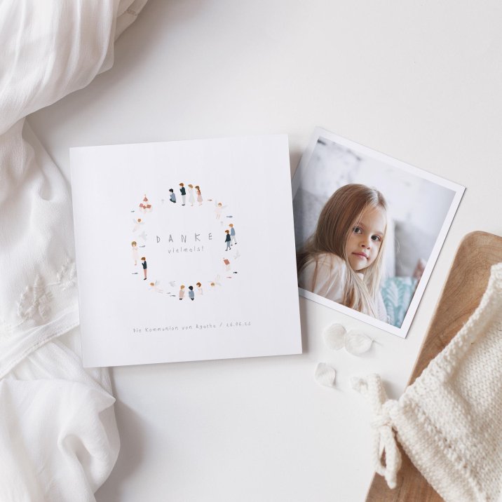 Bedanken Sie sich bei den Verwandten, die bei der Kommunion Ihres Kindes anwesend waren, mit einer schönen, persönlichen Karte.