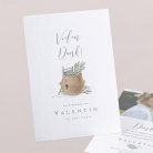 Wählen Sie Ihre Danksagung entweder passend zu Ihrer Einladungskarte oder versenden Sie ein anderes Design, das Ihnen gefällt.