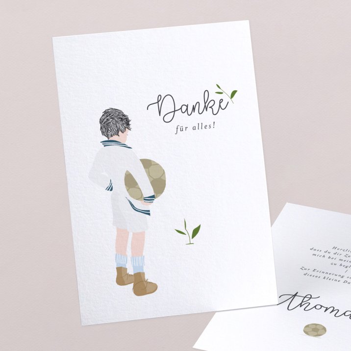 Wählen Sie Ihre Danksagung entweder passend zu Ihrer Einladungskarte oder versenden Sie ein anderes Design, das Ihnen gefällt.