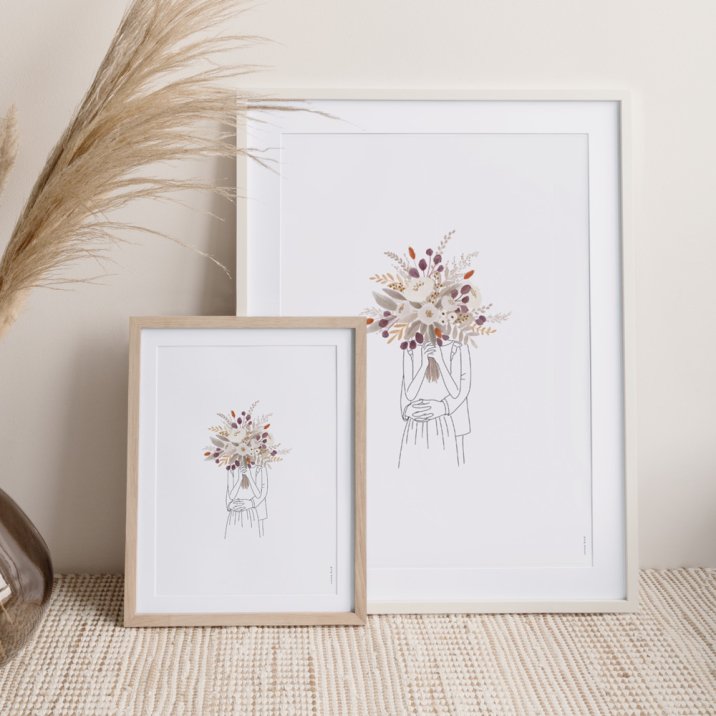 Blumen im XXL-Format! Entdecken Sie unser Poster Zweisam III und seine zarte Illustration, die ein Paar hervorhebt, das sich keck hinter einer riesigen Blumenkomposition versteckt. Der Strauß, so groß wie ihre Liebe ...