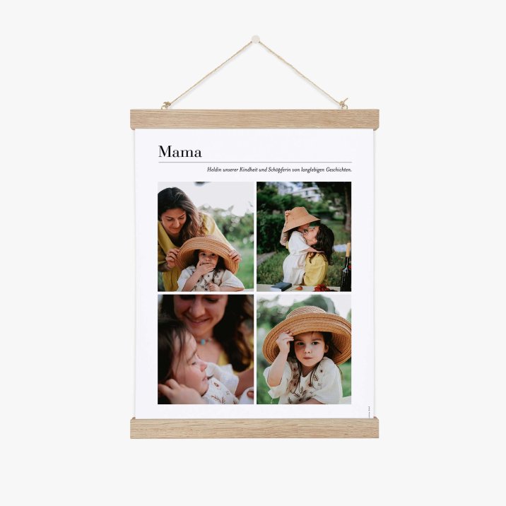 Dieses Poster ist in verschiedenen Formaten erhältlich und findet leicht seinen Platz in Ihrer Wohnungsdeko oder bei einem lieben Menschen, den Sie beschenken möchten. Wir empfehlen, das Poster in einem eleganten Rahmen aus Eichenholz (als Accessoire bestellbar) aufzuhängen.