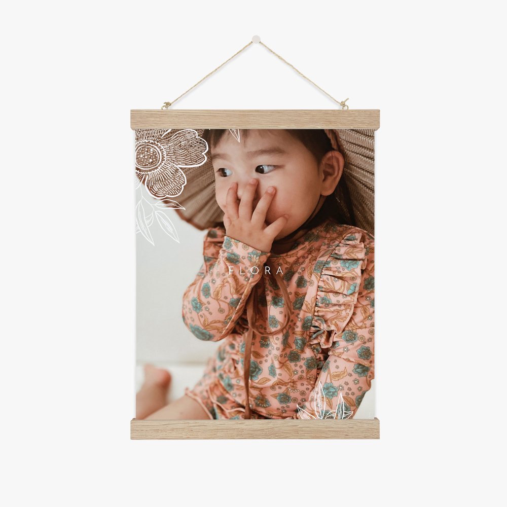 Verschönern Sie Ihre Wände mit einem unserer personalisierten Poster! Entdecken Sie das Modell Désirée und seine filigranen Pflanzenillustrationen, die Ihre Lieblingsfotos wunderschön hervorheben.