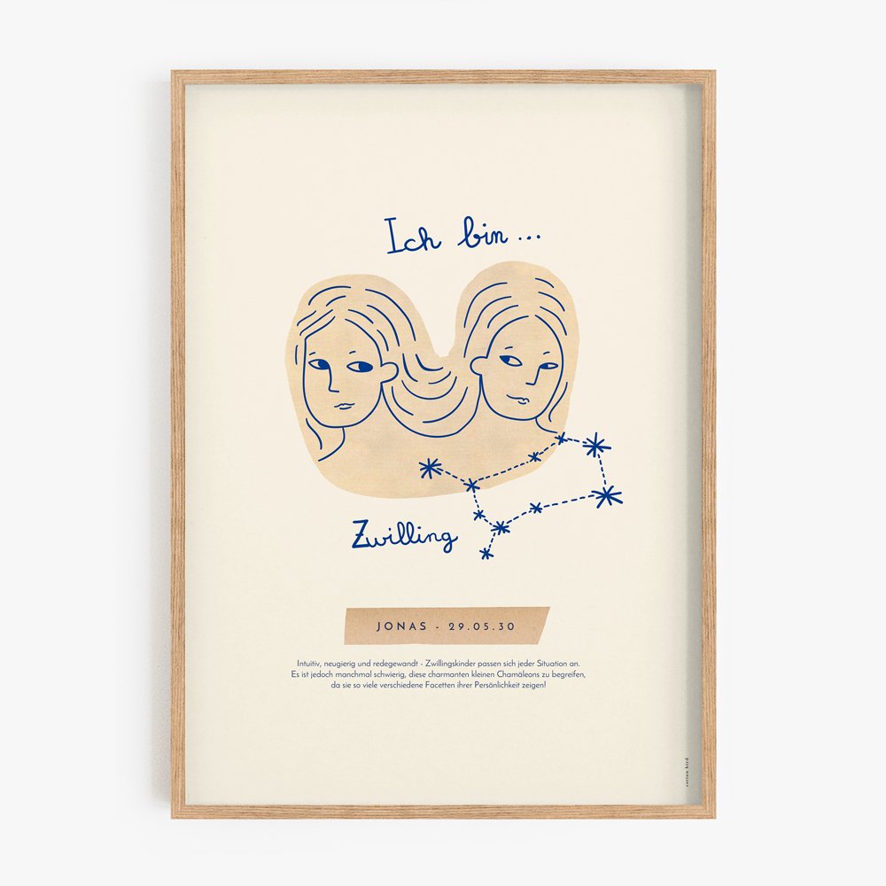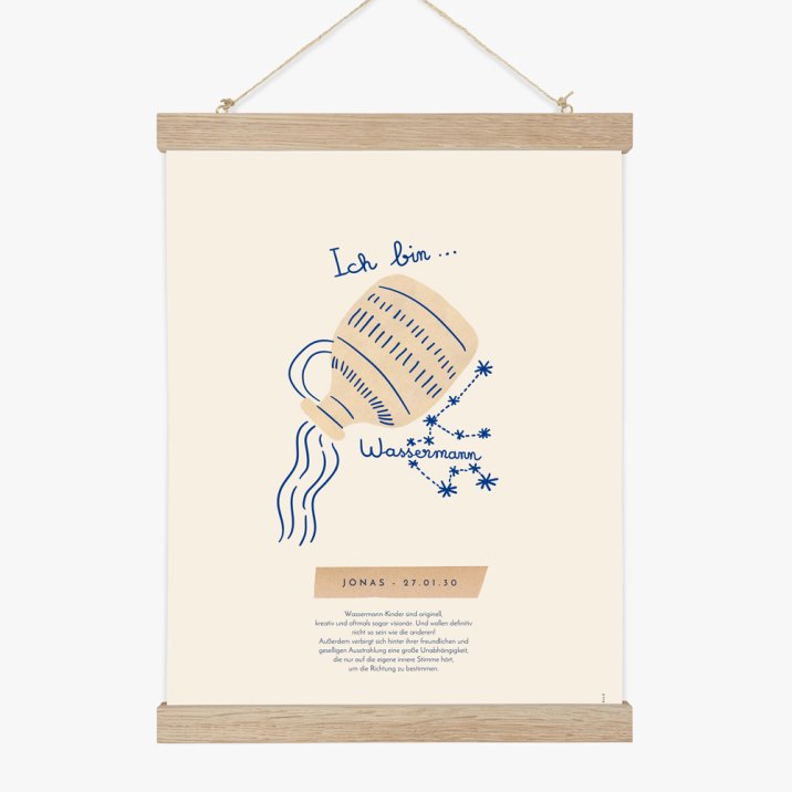 Unsere Designer haben sich von den Tierkreiszeichen inspirieren lassen und eine Posterserie mit liebevollen Geburtshoroskopen entworfen. Auf dem Poster Mein Sternzeichen I ist das Geburtshoroskop Widder auf charmante und humorvolle Weise illustriert. Eine originelle Deko und ein schönes Geschenk, das mit dem Namen und Geburtsdatum Ihres Kindes personalisiert werden kann. NB: Die bunten Formen sind von unseren Designern aus Vintage-Magazinen ausgeschnitten, eingescannt und dann digital nachbearbeitet worden. Die Textureffekte, die auf den farbigen Flächen durchscheinen können, sind das Ergebnis dieser Technik. Das macht ihren Charme und ihre Einzigartigkeit aus!