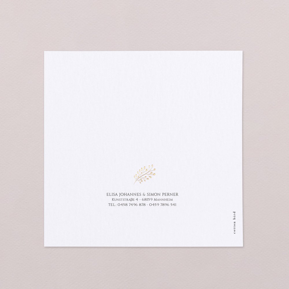 Das Format dieser quadratischen Hochzeitseinladung ist ein echter Klassiker - eine Klappkarte im Querformat, die Sie mit Ihrem Text gestalten können.