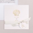 Das Format dieser quadratischen Hochzeitseinladung ist ein echter Klassiker - eine Klappkarte im Querformat, die Sie mit Ihrem Text gestalten können.