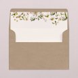 Diese Hochzeitseinladung wird in Form einer dreifach gefalteten Karte im Querformat mit einem persönlichen Etikett geliefert. Beim Öffnen werden Ihre Lieben die Details Ihres schönen Tages entdecken.