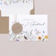 Die Hochzeitseinladung Wildery wird von hübschen Wildblumen und Gräsern geziert. Diese poetische Komposition mit ihrer eleganten Typografie ist perfekt für eine Hochzeit im Boho-Stil.