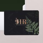 Unsere Designer haben sich von der Schönheit der Abenddämmerung inspirieren lassen und diese ausgefallene Einladung entworfen. Der dunkle Farbton und das natürliche Pflanzenmotiv liegen voll im Trend der kommenden Hochzeitssaison. Die großzügige Kupferprägung lässt die Initialen des Brautpaares stilvoll zur Geltung kommen. Die perfekte Karte, um die Magie der Liebe zu feiern.