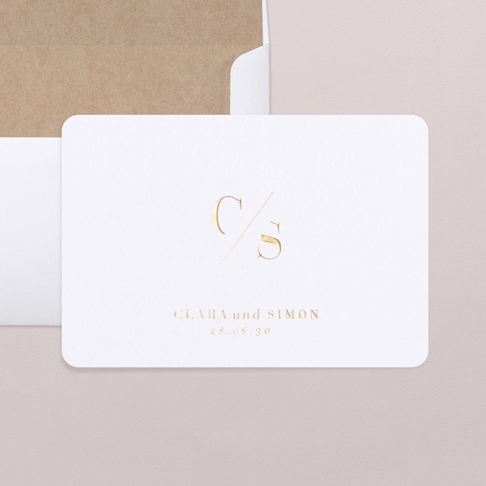 Schlicht und schön - diese Hochzeitseinladung im Querformat hat weich abgerundete Ecken und ist beidseitig personalisierbar.