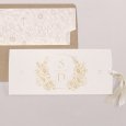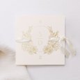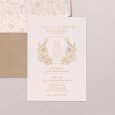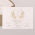 Elegante Vergoldungen zieren die Hochzeitseinladung L'Estate. Die Initialen Ihrer Vornamen und opulenter Blumenkranz sind auf diesem Design in Gold gefasst und verheißen eine ganz besondere Hochzeit.
