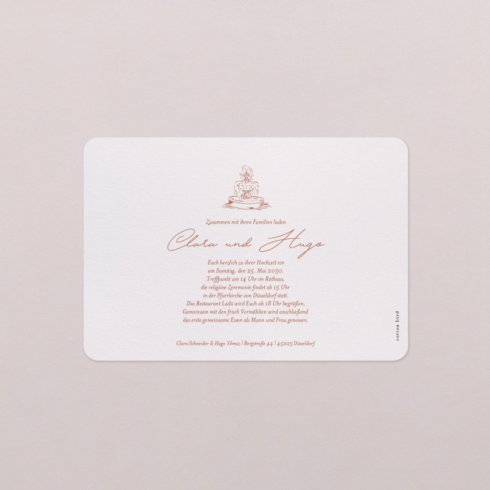 Schlicht und schön - diese Hochzeitseinladung im Querformat hat weich abgerundete Ecken und ist beidseitig personalisierbar.