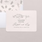 Eine sanfte Auszeit zeichnet sich auf der Hochzeitseinladung Solenzara ab. Illustriert als Hommage an das gleichnamige kleine korsische Dorf, ist dieses minimalistische Design perfekt, um eine Hochzeit auf dem Land anzukündigen.