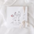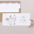 Hand in Hand und mit liebevollen Details gezeichnet, zeigt die Hochzeitseinladung Ritournelle das Brautpaar in einer zarten, poetischen Darstellung. Florale Akzente und ein natürlicher Stil machen diese Karte perfekt für eine entspannte, elegante Boho-Hochzeit.
