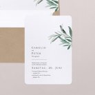 Schlicht und schön - diese Hochzeitseinladung im Hochformat hat weich abgerundete Ecken und ist beidseitig personalisierbar.