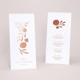 Warmes Terracotta und ein feine Illustration mit glänzender Kupferveredelung machen die Einladung Bergamotte perfekt für Ihren großen Tag.