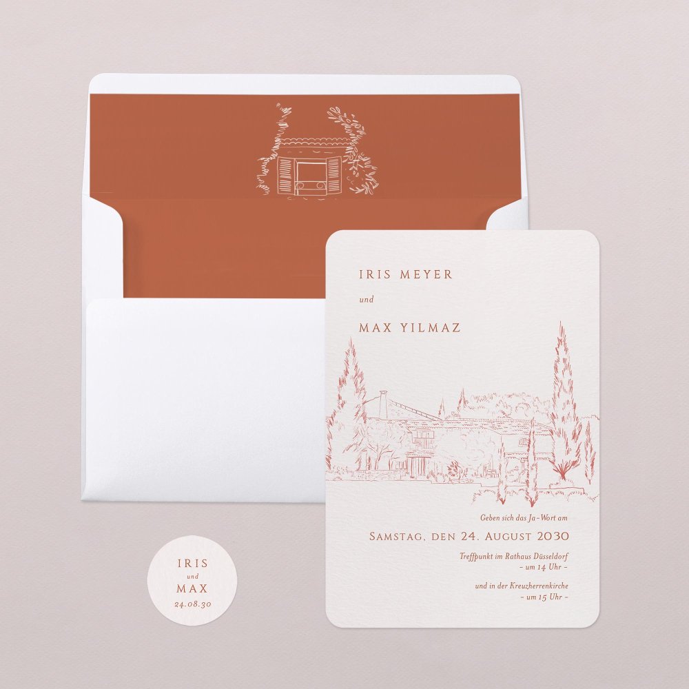 Entdecken Sie auch die Umschlag-Einlage und Aufkleber im passenden Design zur Einladungskarte (siehe unten).