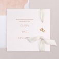 Zwei ineinander verschlungene goldene Ringe schmücken die Hochzeitseinladung Eternal Love und symbolisieren stilvoll die Verbindung zweier Herzen. Dieses minimalistische und elegante Design richtet den Fokus auf das Wesentliche: die Feier Ihrer Liebe.