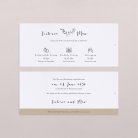 Einladung bestehend aus einer Kartenhülle und zwei Einsteckkarten. Einsteckkärtchen seitlich vorgestanzt, vorderseitig personalisierbar, Kartenrückseite weiß. Für zusätzliche Eleganz empfehlen wir, beide Karten mit einem schönen Band zusammenzubinden. Band nicht im Lieferumfang enthalten.