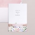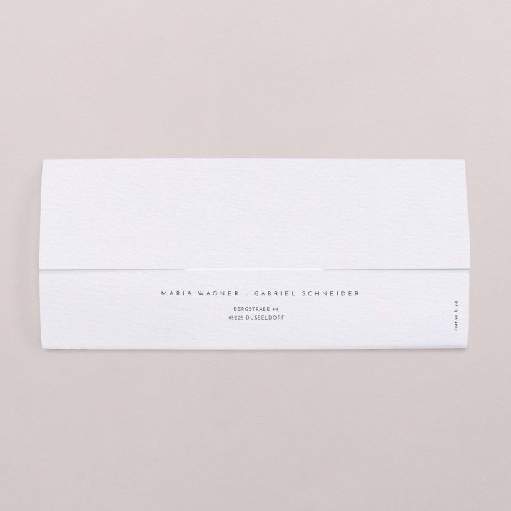 Einladung bestehend aus einer Kartenhülle und zwei Einsteckkarten. Einsteckkärtchen seitlich vorgestanzt, vorderseitig personalisierbar, Kartenrückseite weiß. Für zusätzliche Eleganz empfehlen wir, beide Karten mit einem schönen Band zusammenzubinden. Band nicht im Lieferumfang enthalten.