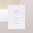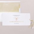 Auf der Hochzeitseinladung Bow and Rings sind zwei goldene Ringe durch ein stilvolles Band miteinander verbunden. Die Namen des Brautpaares, kunstvoll in Gold veredelt, verkünden emotional und elegant Ihre bevorstehende Trauung.