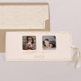 Einladung bestehend aus einer Kartenhülle und zwei Einsteckkarten. Einsteckkärtchen seitlich vorgestanzt, vorderseitig personalisierbar, Kartenrückseite weiß. Für zusätzliche Eleganz empfehlen wir, beide Karten mit einem schönen Band zusammenzubinden. Band nicht im Lieferumfang enthalten.