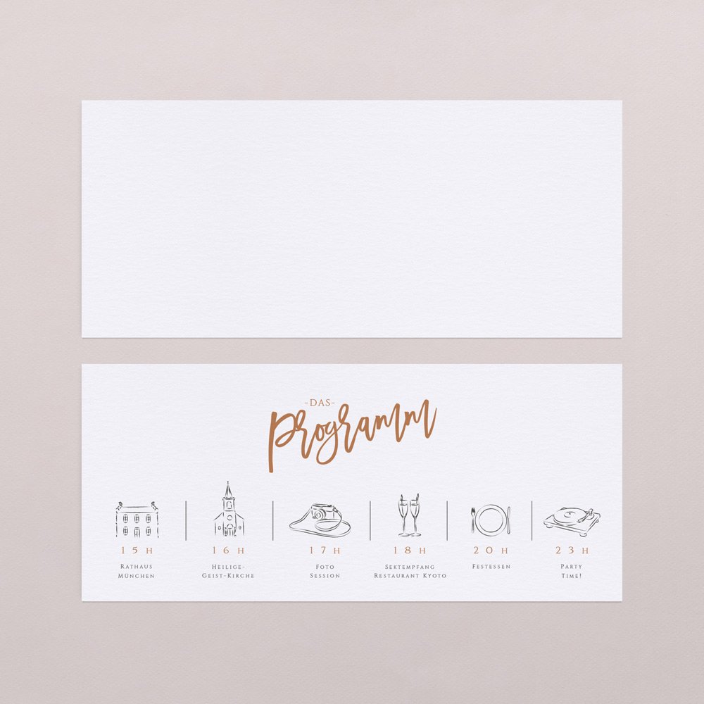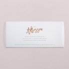 Diese Hochzeitseinladung im Querformat besteht aus einer personalisierbaren Transparentpapier-Banderole mit Motivaufdruck und zwei beidseitig personalisierbaren Einsteckkarten.
