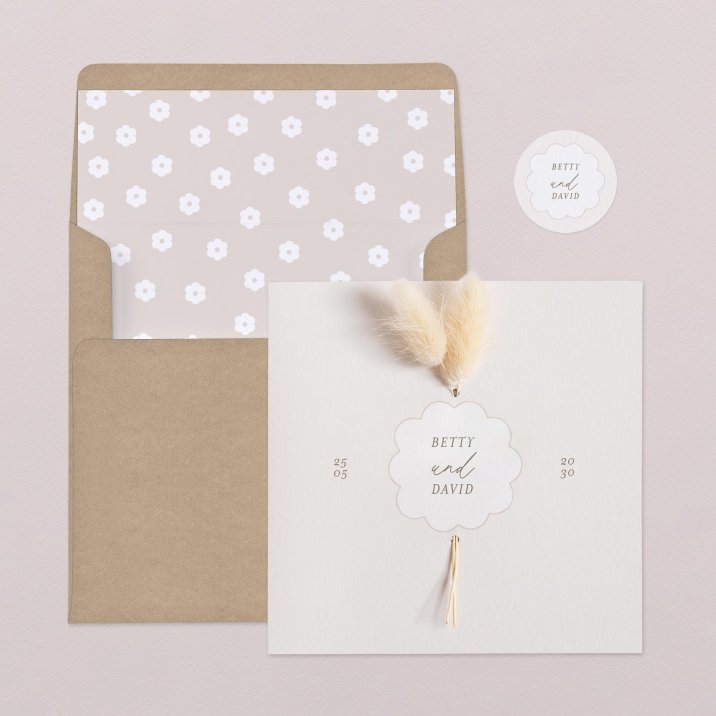 Unser Tipp: Überreichen Sie Ihre Hochzeitseinladung per Hand an Ihre Empfänger, um einen unvergesslichen Auftritt der Trockenblumen zu garantieren.
