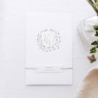 Zarte florale Illustrationen umrahmen Ihre mit Goldfolie geprägten Initialen. Lassen Sie sich von der minimalistischen Eleganz der Hochzeitseinladung Cap Ferrat verführen.