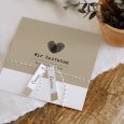 Diese Einladungskarte besteht aus einer quadratischen Klappkarte mit Einstecklasche, einem Einleger und einem Anhänger. Wir empfehlen, den Anhänger mit einem schönen Band Ihrer Wahl an der vorgestanzten Karte zu befestigen (Band als Accessoire bestellbar).
