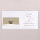 Diese Einladungskarte besteht aus einer quadratischen Klappkarte mit Einstecklasche, einem Einleger und einem Anhänger. Wir empfehlen, den Anhänger mit einem schönen Band Ihrer Wahl an der vorgestanzten Karte zu befestigen (Band als Accessoire bestellbar).