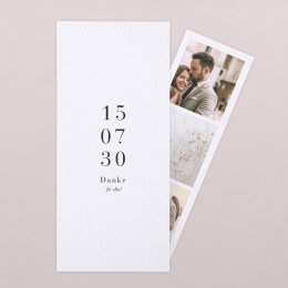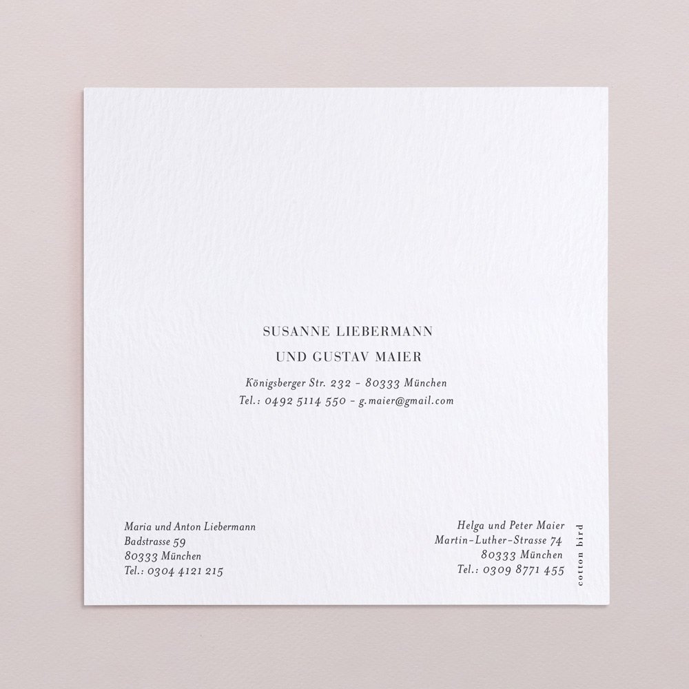 Diese Einladungskarte besteht aus einer quadratischen Klappkarte mit Einstecklasche, einem Einleger und einem Anhänger. Wir empfehlen, den Anhänger mit einem schönen Band Ihrer Wahl an der vorgestanzten Karte zu befestigen (Band als Accessoire bestellbar).