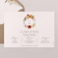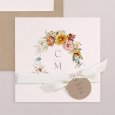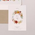 Große, farbenfrohe Blumen verleihen der Hochzeitseinladung Agostino und der Ankündigung Ihrer Feierlichkeiten einen Hauch Retro-Charme. Das perfekte Design für ein "Ja-Wort" in der warmen Jahreszeit oder im Spätsommer.