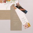 Diese Einladungskarte besteht aus einer quadratischen Klappkarte mit Einstecklasche, einem Einleger und einem Anhänger. Wir empfehlen, den Anhänger mit einem schönen Band Ihrer Wahl an der vorgestanzten Karte zu befestigen (Band als Accessoire bestellbar).