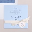 Diese Einladungskarte besteht aus einer quadratischen Klappkarte mit Einstecklasche, einem Einleger und einem Anhänger. Wir empfehlen, den Anhänger mit einem schönen Band Ihrer Wahl an der vorgestanzten Karte zu befestigen (Band als Accessoire bestellbar).
