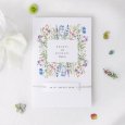 Die Hochzeitseinladung "Spring Wildery" zeigt zarte Sträuße von Wildblumen um die Namen des Brautpaares. Ein herrliches Aquarell in Boho-Farbtönen, perfekt, um Ihre farbenfrohe Hochzeit im Frühling oder Sommer zu verkünden.