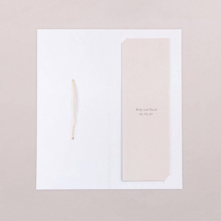 Diese Hochzeitseinladung besteht aus einer Klappkarte im Hochformat und einem herausnehmbaren Fotostreifen mit Platz für 3 Ihrer schönsten Fotos. Der Streifen kann als Erinnerung an den Kühlschrank gepinnt oder als Lesezeichen genutzt werden.