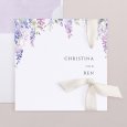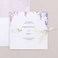 Auf der Hochzeitseinladung "Wysteria" ranken sich wunderschöne violette Glyzinien in Aquarell um Ihre frohe Botschaft. Diese florale Komposition voller Poesie ist ideal, um eine sommerliche Hochzeit anzukündigen.