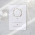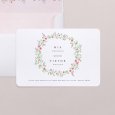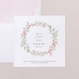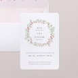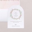 Auf der Hochzeitseinladung Round Romance ziert eine zarte Krone aus rosafarbenen Aquarellblumen Ihre freudige Ankündigung. Diese raffinierte und romantische Papeterie kündigt Ihre bevorstehende Hochzeit mit viel Sanftheit an.