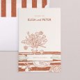 Die süße Poesie der Amalfiküste wird auf der Hochzeitseinladung Sorrento zum Leben erweckt. Ein hübscher Tisch mit mediterranem Flair, gestaltet in Terrakotta-Tönen, ziert diese Papeterie und verspricht eine sonnige Feier im Geist des Dolce Vita.